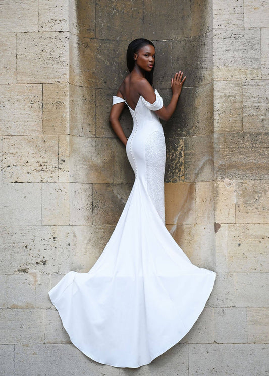 Dando London is a renowned British Bridal Designer founded by the talented Christine Dando. It is the result of Christine's extensive experience and unwavering passion for the world of bridal fashion, evident in every intricacy of the collections produced. Having received comprehensive training in design, pattern cutting, and dressmaking in Singapore, Christine's creative journey was profoundly influenced by the iconic wedding of Charles and Diana in 1981. Inspired by this event, she went on to establish her first bridal boutique in the UK, specialising in crafting bespoke gowns. We are very proud to have her gowns available at our affordable bridal shops in Northern Ireland .